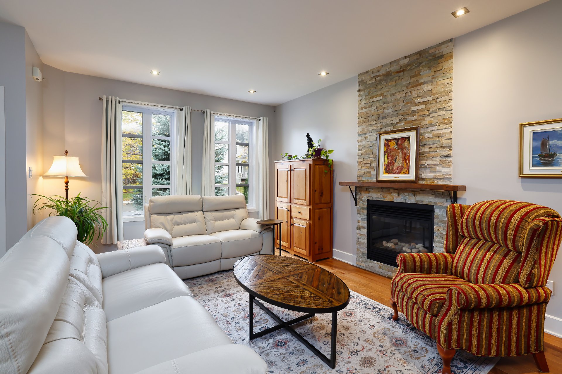 Le salon baigné de lumière s'articule autour d'un élégant