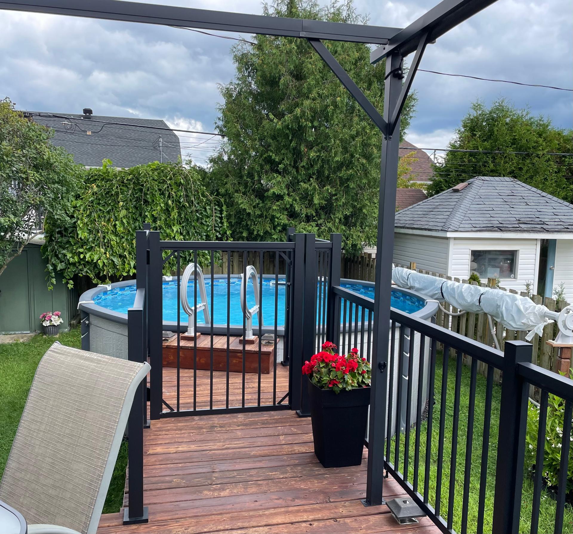 et sa pergola intégrée avec toiles enrouleurs de chaque