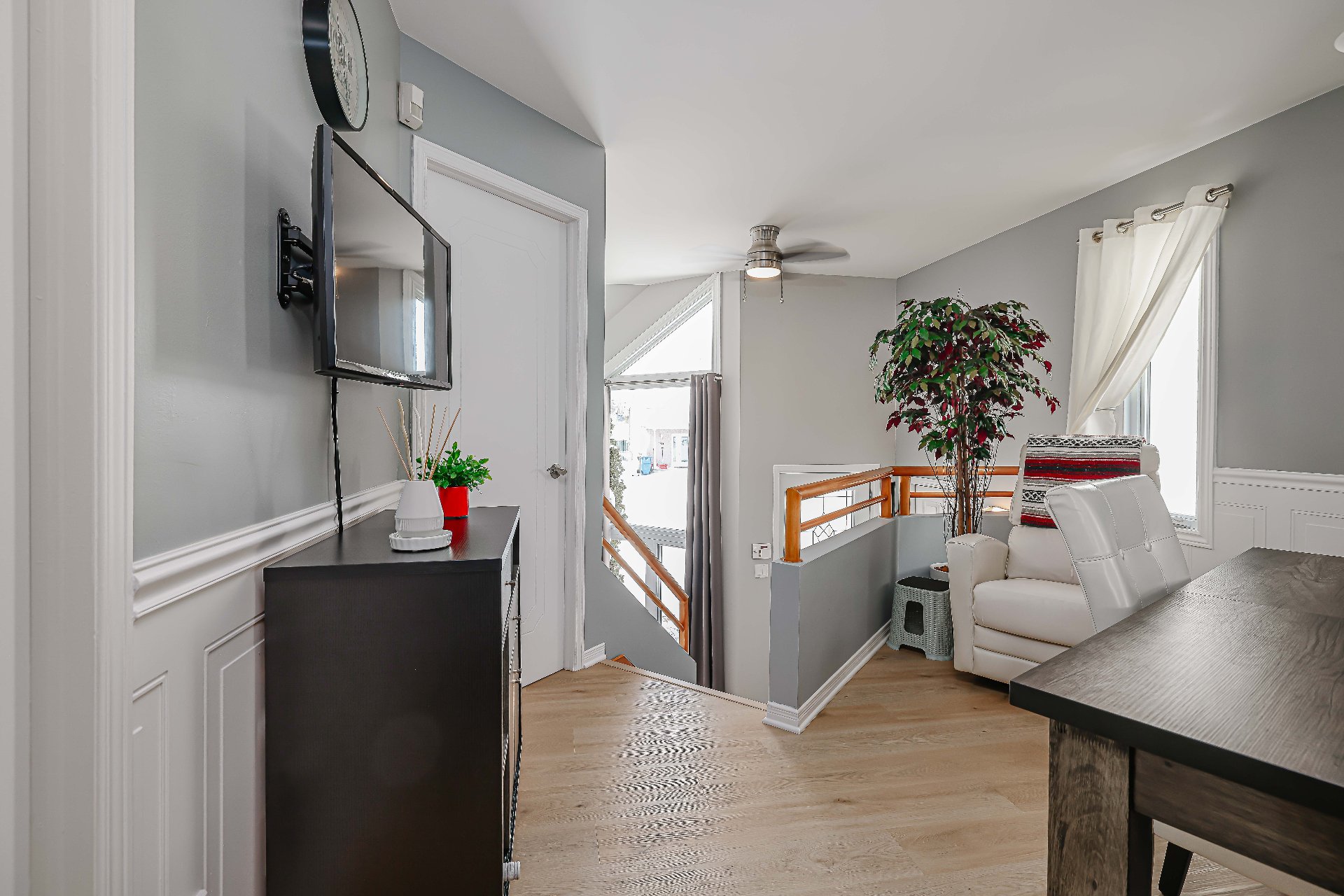Située dans un secteur recherché de La Plaine, cette superbe maison à paliers multiples offre 3 chambres, 2 salles de bain complètes et un grand hall d'entrée accueillant menant à des espaces de vie lumineux et conviviaux. Entretenue avec grand soin et améliorée au fil des années, notamment ***les fenêtres***, elle propose beaucoup de rangement et une cour intime aménagée avec un solarium 3 saisons ainsi qu'une pergola avec toiles enrouleurs de chaque côté, parfaite pour des soirées d'été mémorables. Une propriété qui combine confort, style et emplacement de choix.